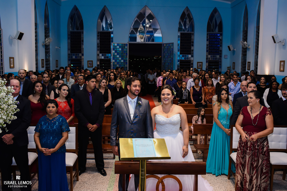 Sorriso dos noivos na Igreja N. S. de Fatima na cidade de Pará de Minas MG, feitas pelo fotografo israel lemos em Para de Minas