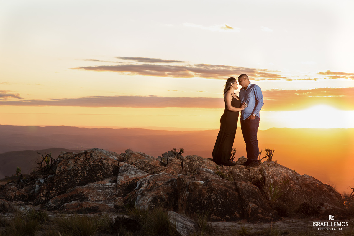 Casal da cidade de Pitangui realiza ensaio fotografico em serra do cipo com por do sol